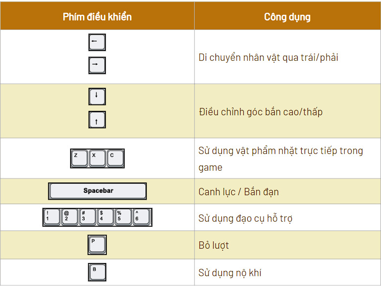 Dưới đây là các phím thao tác điều khiển cơ bản của Gunny Online: